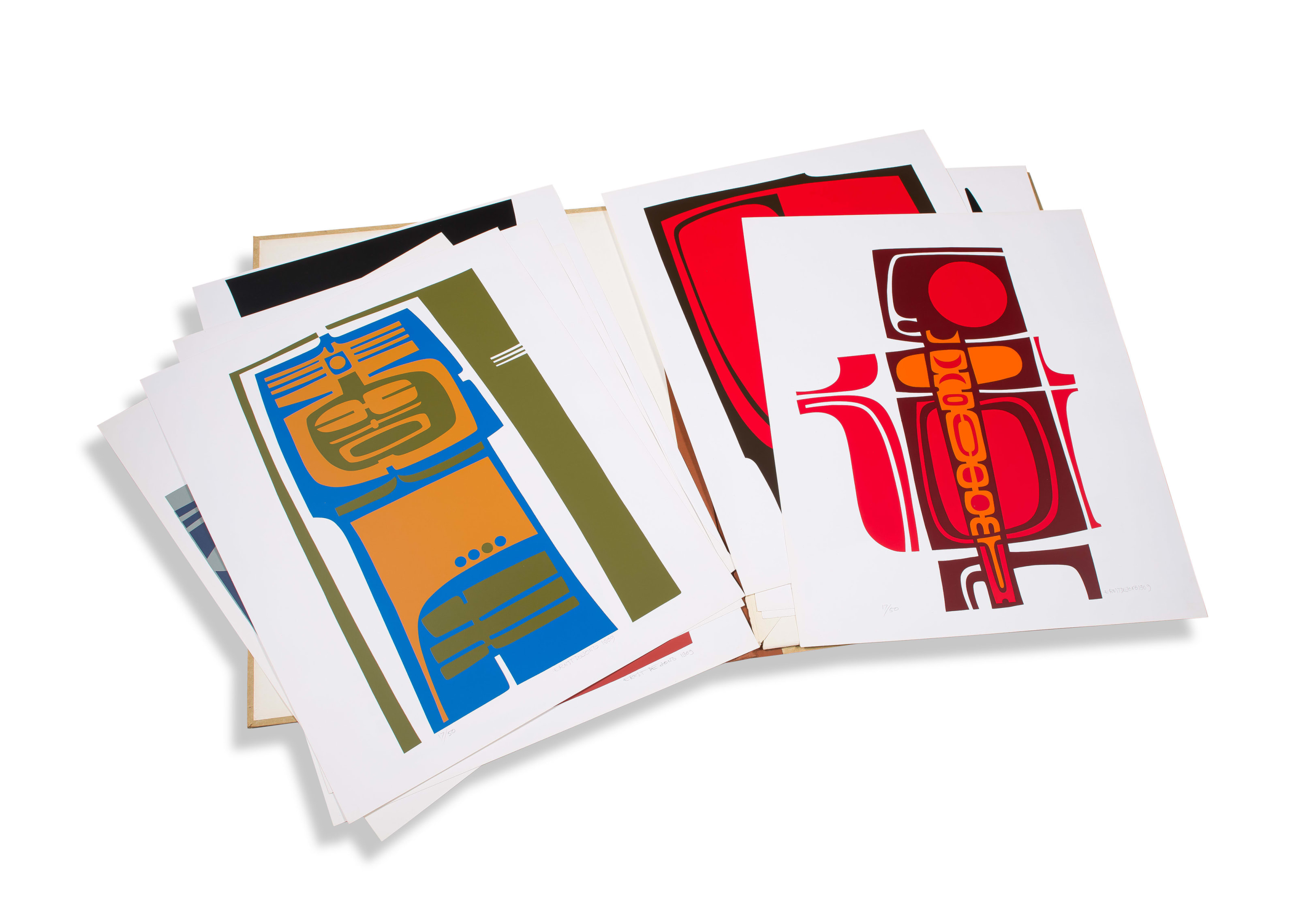 Medien: colour screenprint on paper in a clothbound portfolio case Größe : sheet size: 63,5 by 50,5cm; portfolio case: 69 by 56 by 1cm Unterschrift: each signed, dated 1969 and numbered 17/50 in pencil in the margin