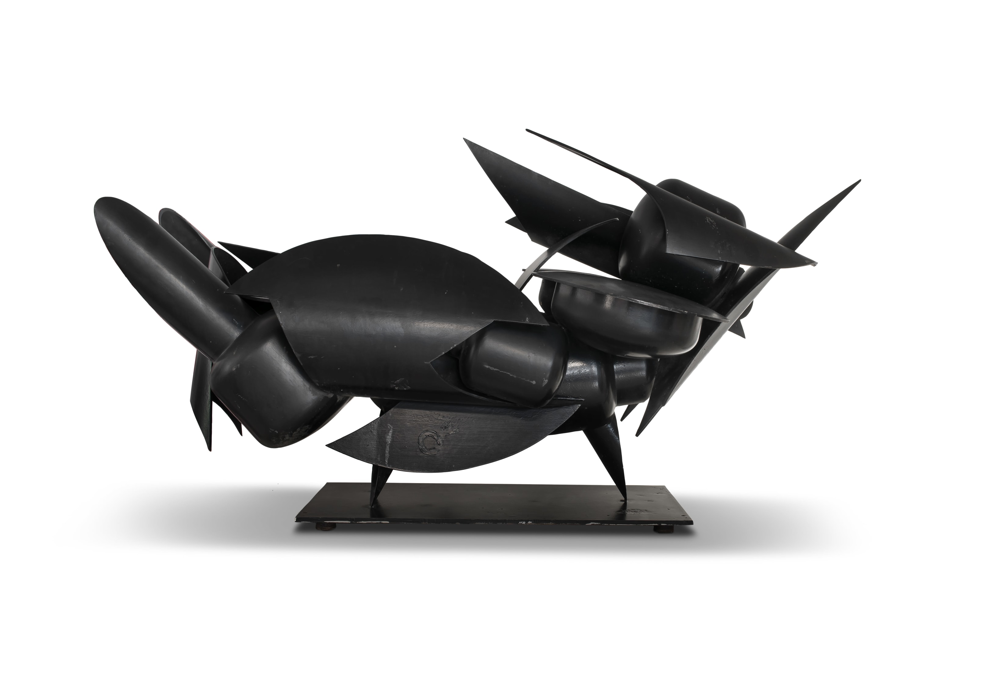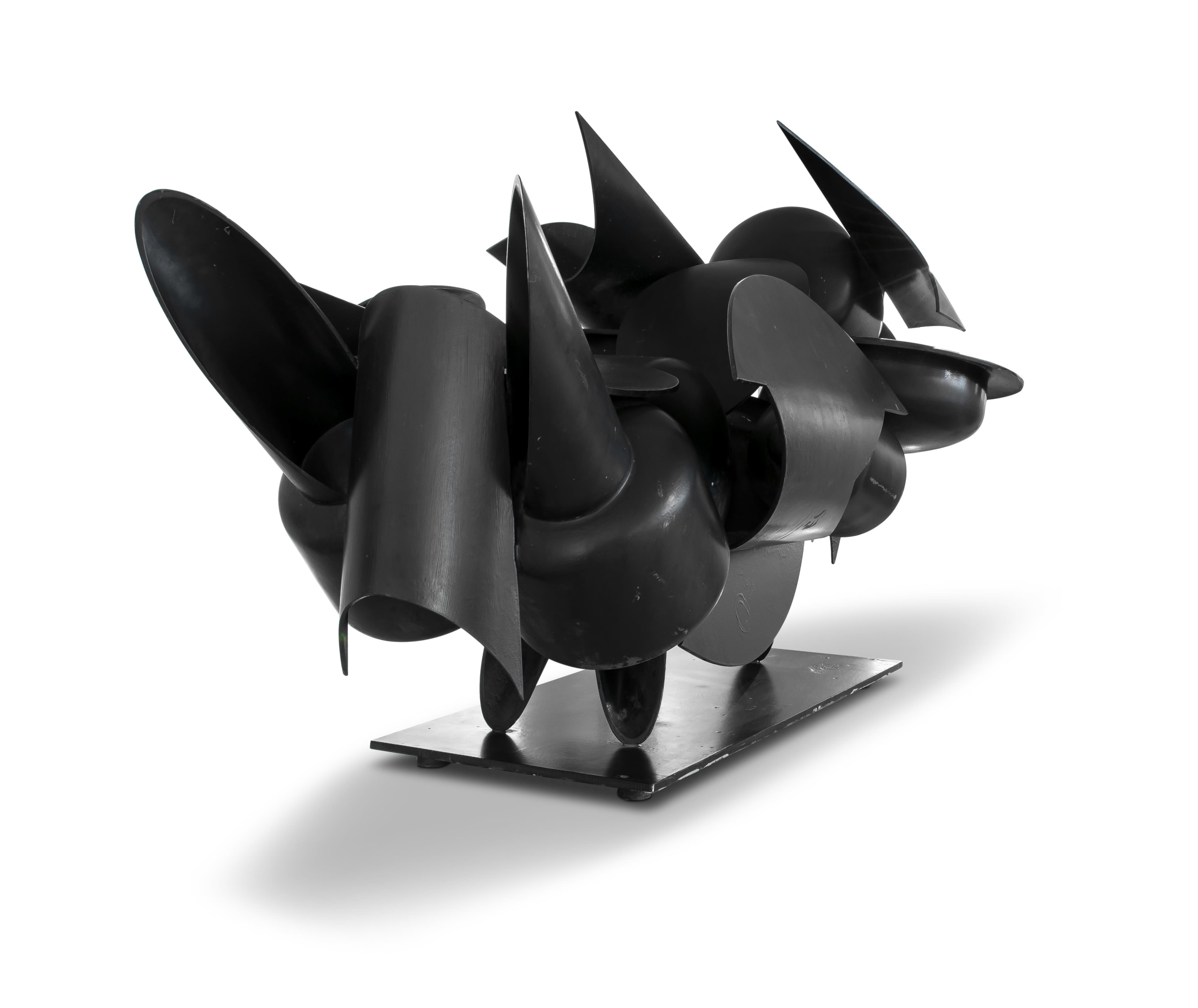 Medien: painted steel with a black patina on a metal base Größe : height: 108cm excluding the base, 198,5cm including the base, width: 197cm, depth: 85cm Unterschrift: signed and dated 1995