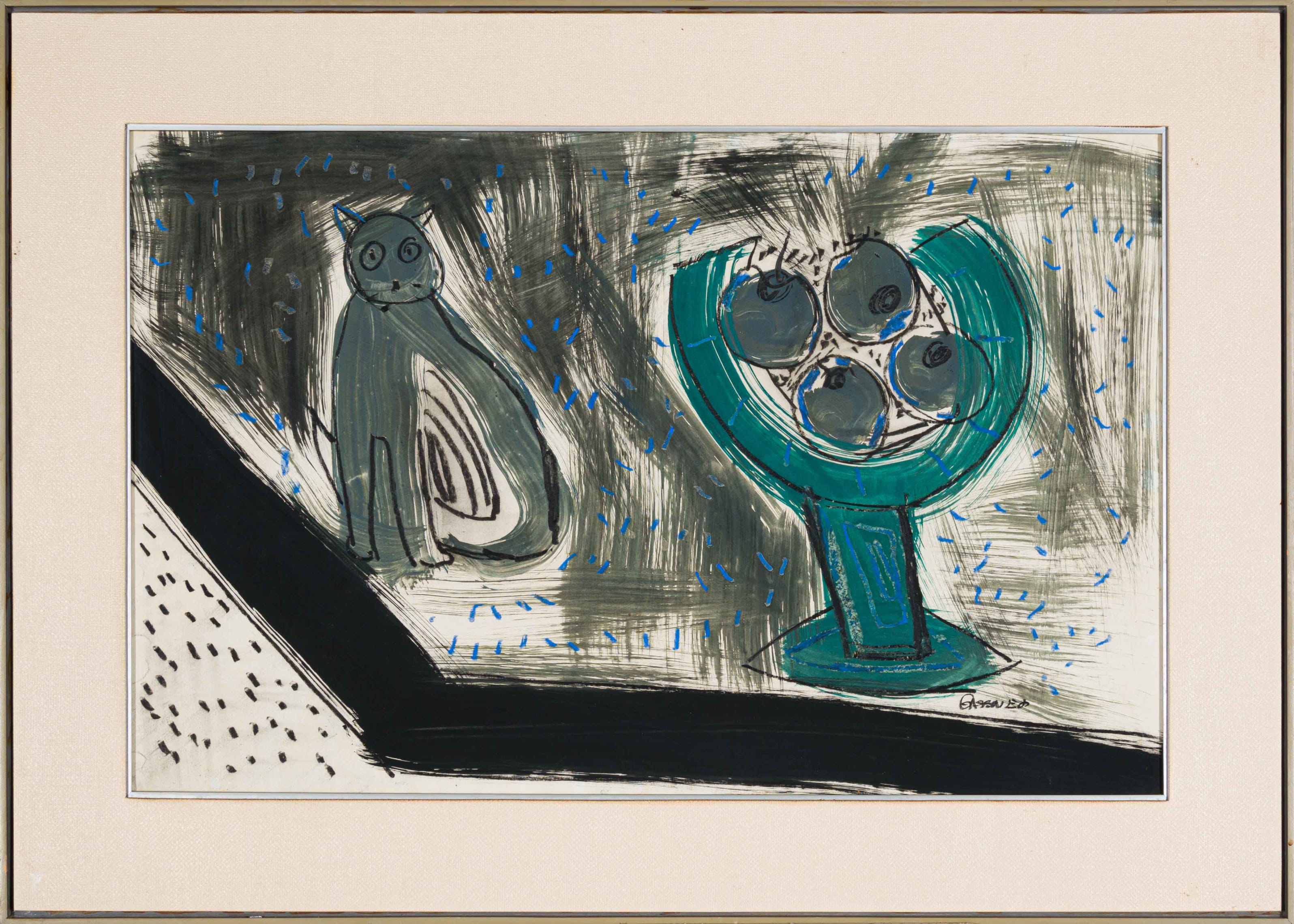 Cat with Fruit in a Bowl ,