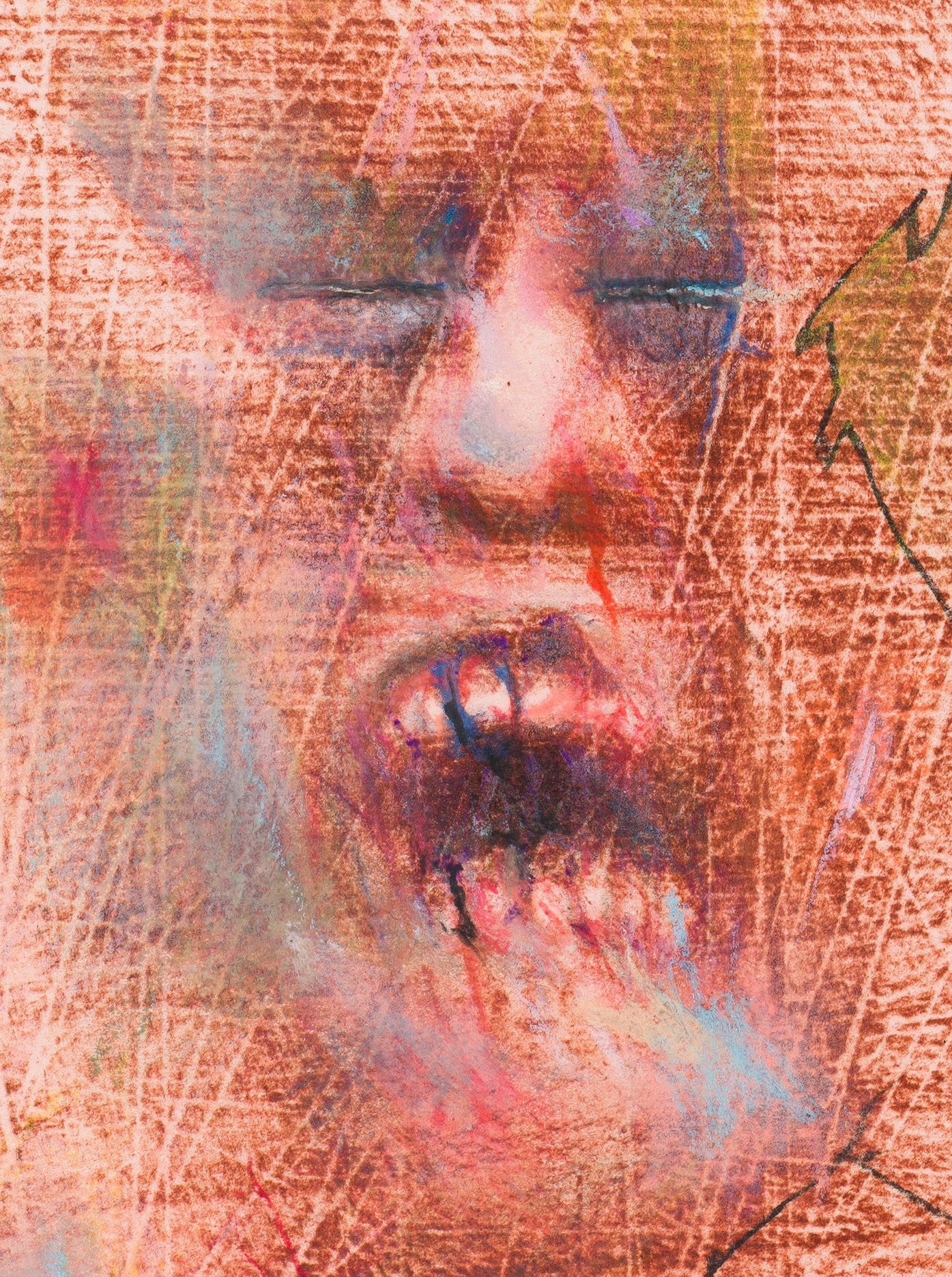 Anmerkung : Judith Mason’s Eyes Right series (2009), lithographic prints with unique added drawings in pastel, pencil, colouring pencil and poker-work on paper, makes an anti-war statement, referencing military might in drab military hues. The works are variations on the theme of a soldier taking marching orders from a drill sergeant and feature three-dimensional-looking screaming mouths. They were exhibited in the Eleven Voices exhibition at the Deering Estates National Park, Miami, in 2016.