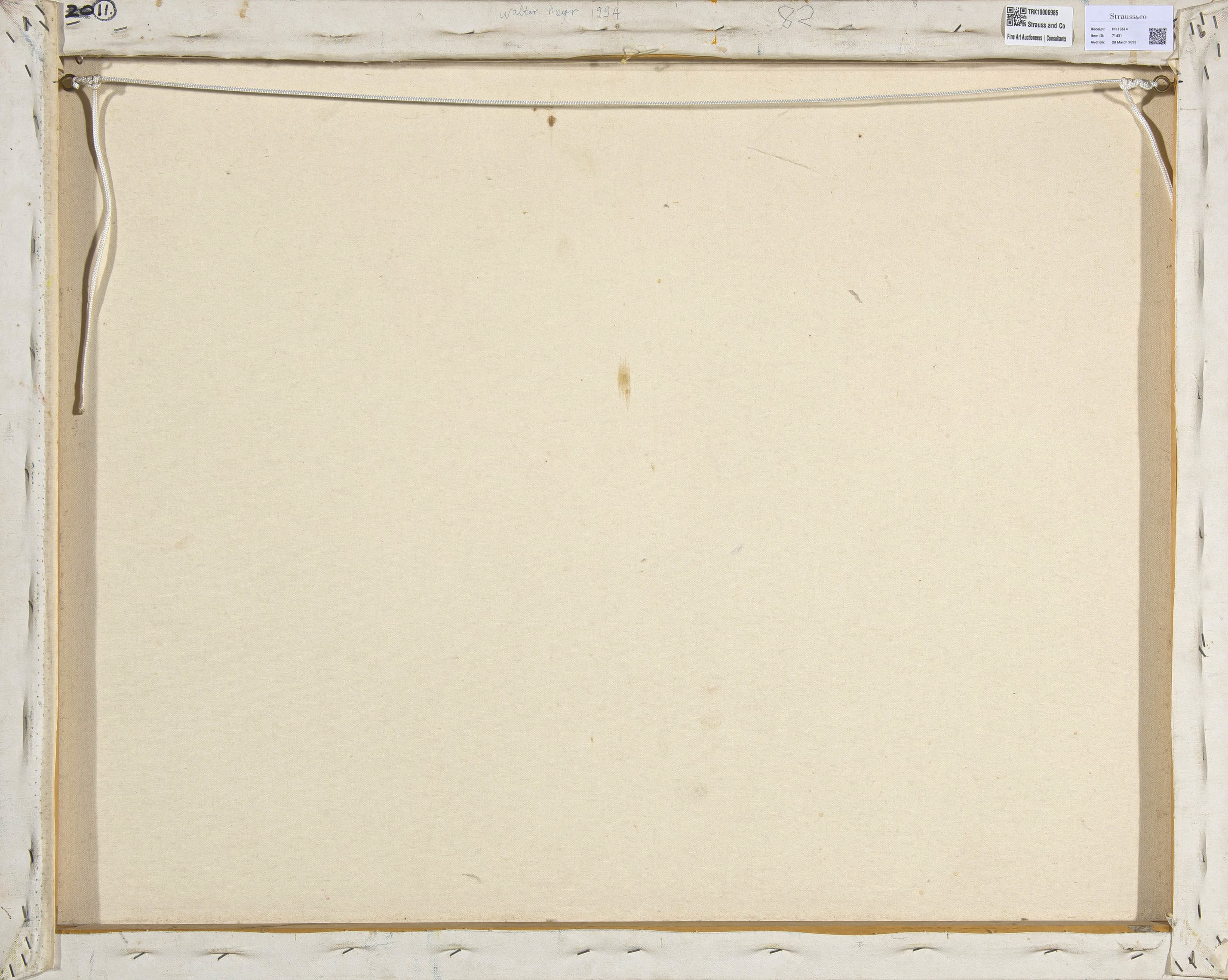 Medien: oil on canvas Größe : 80 by 100 by 2,5cm, unframed Unterschrift: signed with the artist's initials and dated 94, signed and dated 1994 on the reverse