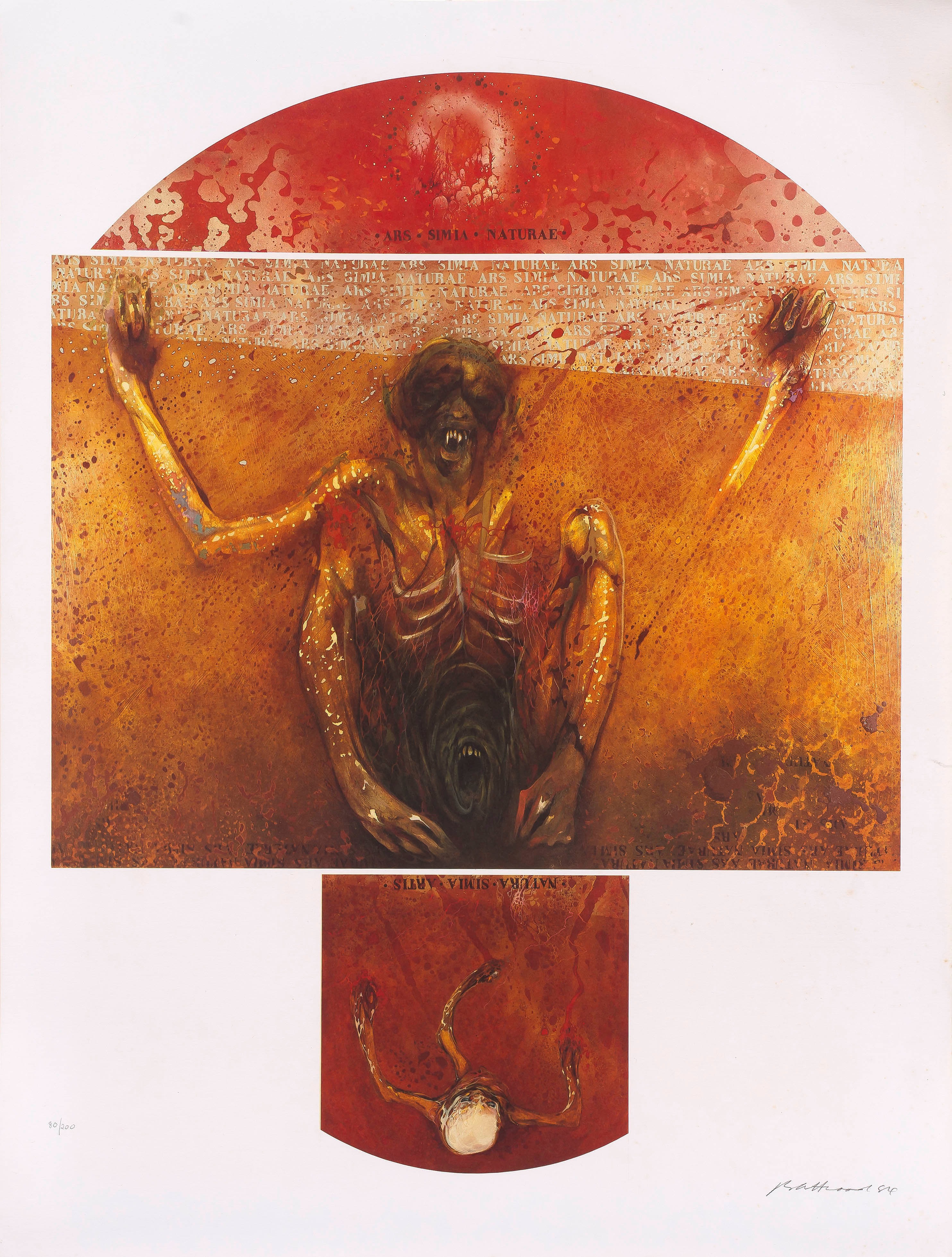 Anmerkung : ...I made Monkey Shrine a vehicle for expressing as much of the pleasure as I could. Against such self-indulgence I have sought to describe the paradoxes of fear and pain and isolation, using repellent images which nevertheless convey dignity and pathos. In no way is any of this work satire, It is simply a set of metaphors which glance off each other.