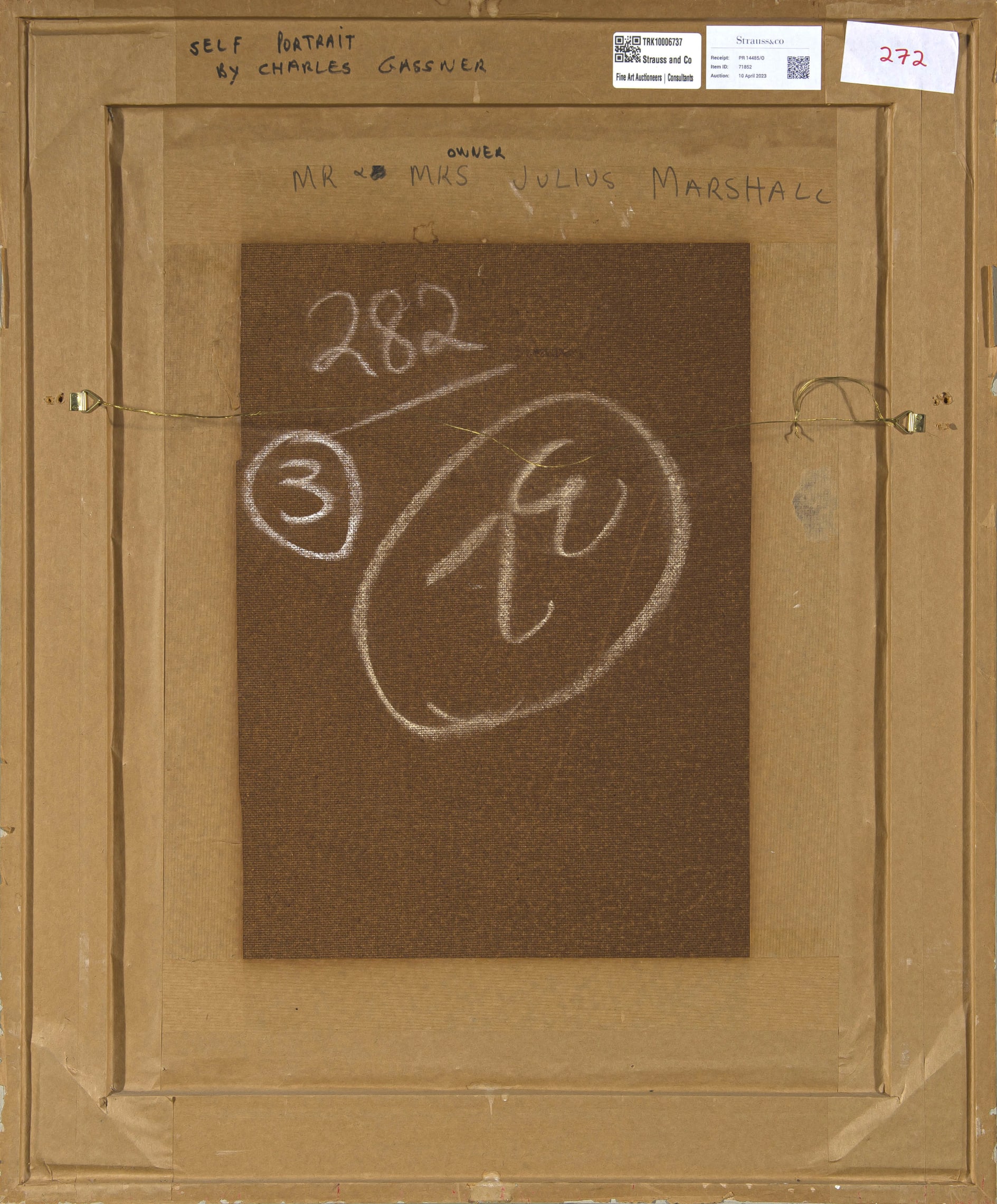 Medien: oil on board Größe : 59 by 47cm excluding frame; 74 by 61,5 by 4,5cm including frame Unterschrift: signed; inscribed 'Self Portrait by Charles Gassner' and 'owner Mr and Mrs Julius Marshall' on the reverse