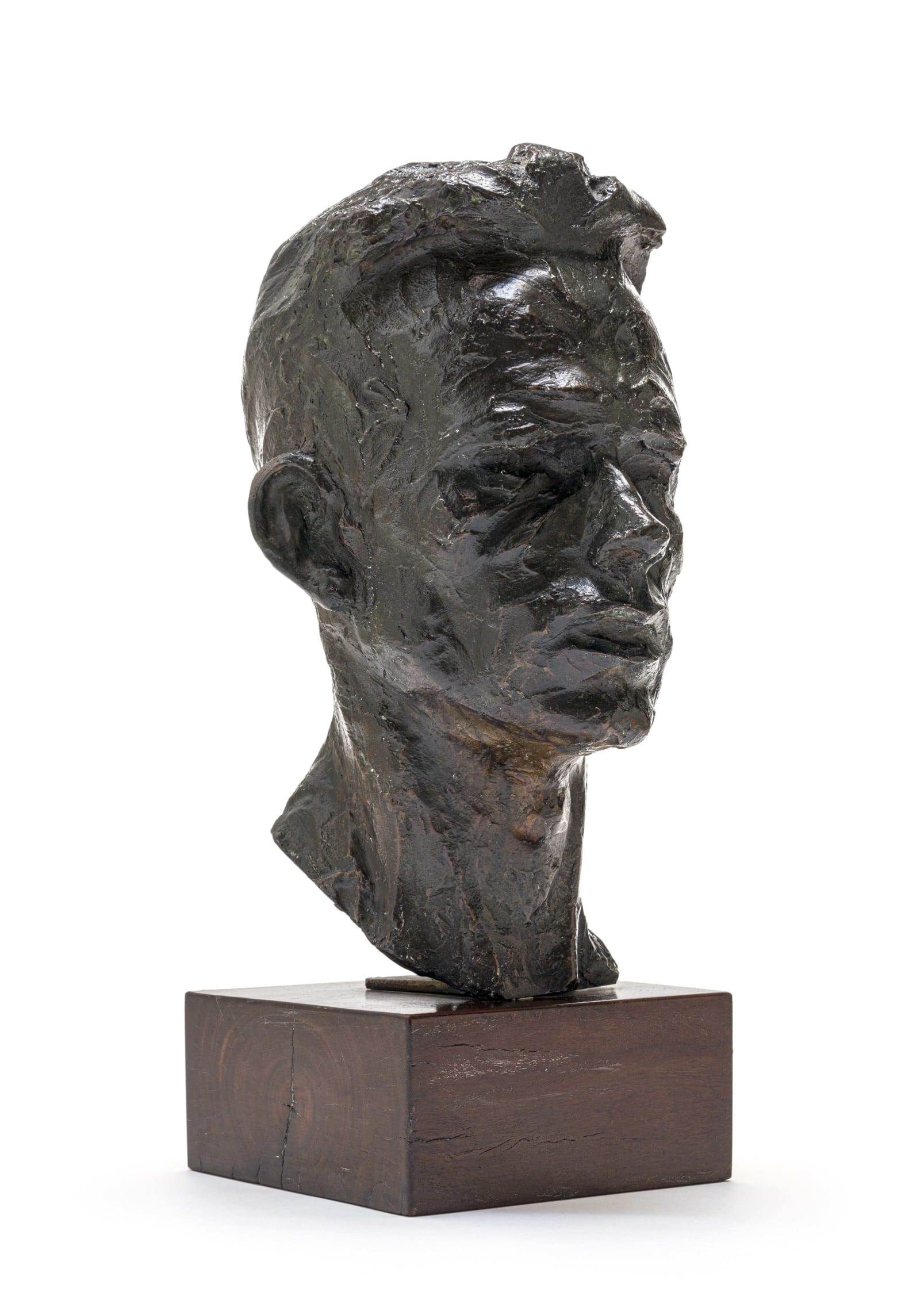 Anmerkung : Fresh from his studies at the Scuola D’Arte Andrea Fontoni in Bergamo, Edoardo Villa was conscripted by Mussolini, and saw action on the North African front. Wounded, captured by British forces, and hospitalized in Egypt, he was moved to Zonderwater, the prisoner of war camp on the eastern outskirts of Pretoria, in 1942. Given some access to materials there, Villa produced a small number of works during his internment, including carefully moulded busts, large-scale figural studies, a depiction of the crucifixion for the chapel at Zonderwater, and even a Pieta put forward for the South African War Cemetery in Castiglione (which was rejected). The current lot, a dashing and rare self-portrait, is his first recorded work made in South Africa. It catches the youthful and handsome artist in a defiant stare, with his fringe swept back, his lips sharply defined, and his face still gaunt. With the express permission from the artist, this evocative example was cast in the winter of 2008 by the Vignali Artistic Foundry in Pretoria. Other castings are held by the artist’s heirs and the University of Pretoria.