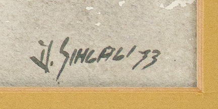 Medien: watercolour on paper Größe : 50 by 68cm excluding frame, 69 by 85 by 2cm including frame Unterschrift: signed and dated 73