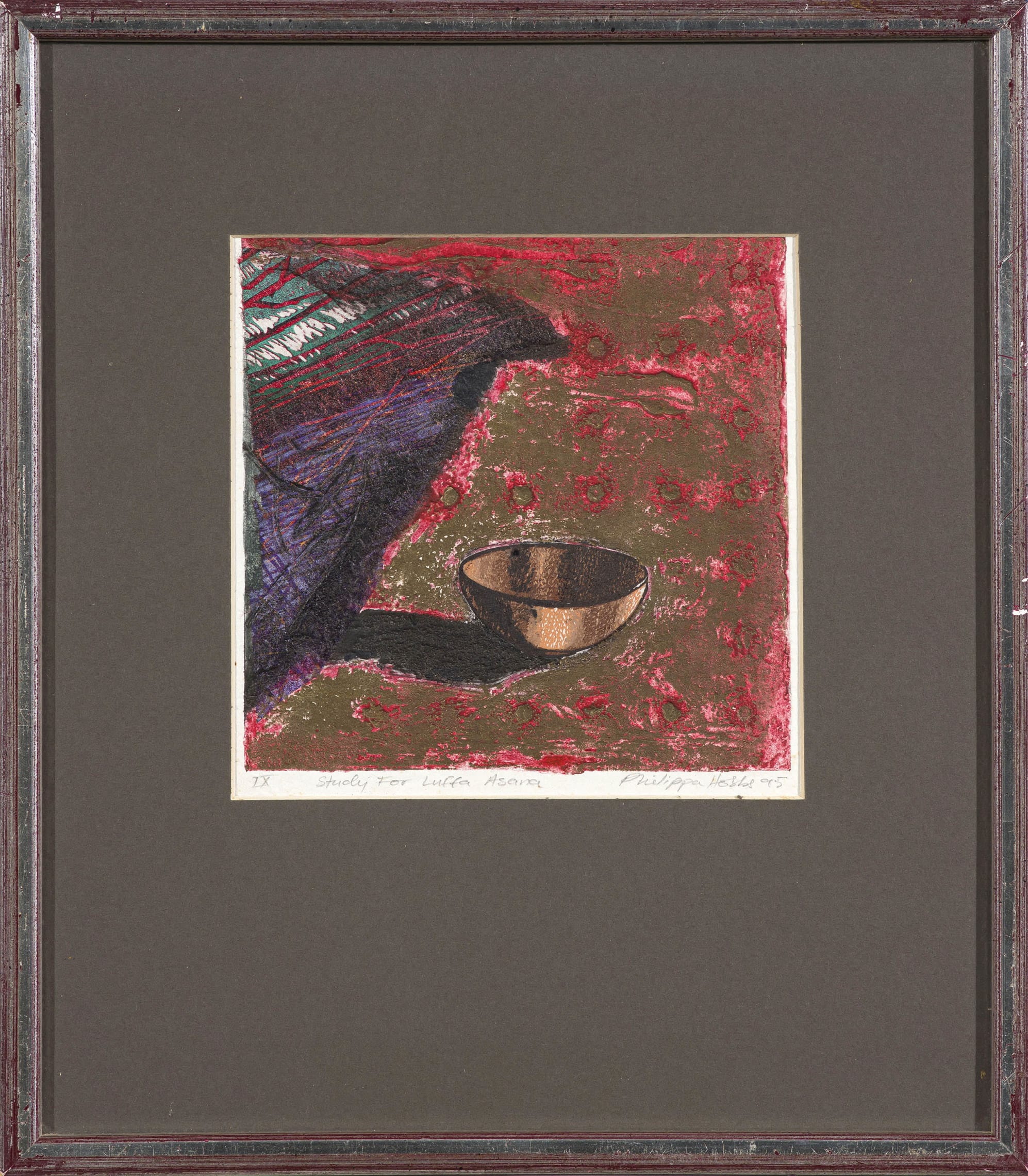 Medium: collagraph on paper Size : image size: 19 by 18.5cm; 40,5 by 35,5 by 2cm including frame Signature: signed, dated 95, numbered IX and inscribed with the title in pencil in the margin; inscribed with the artist's name and title on a Strydom Gallery label adhered to the reverse