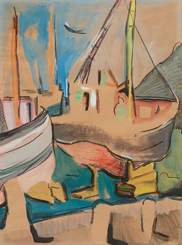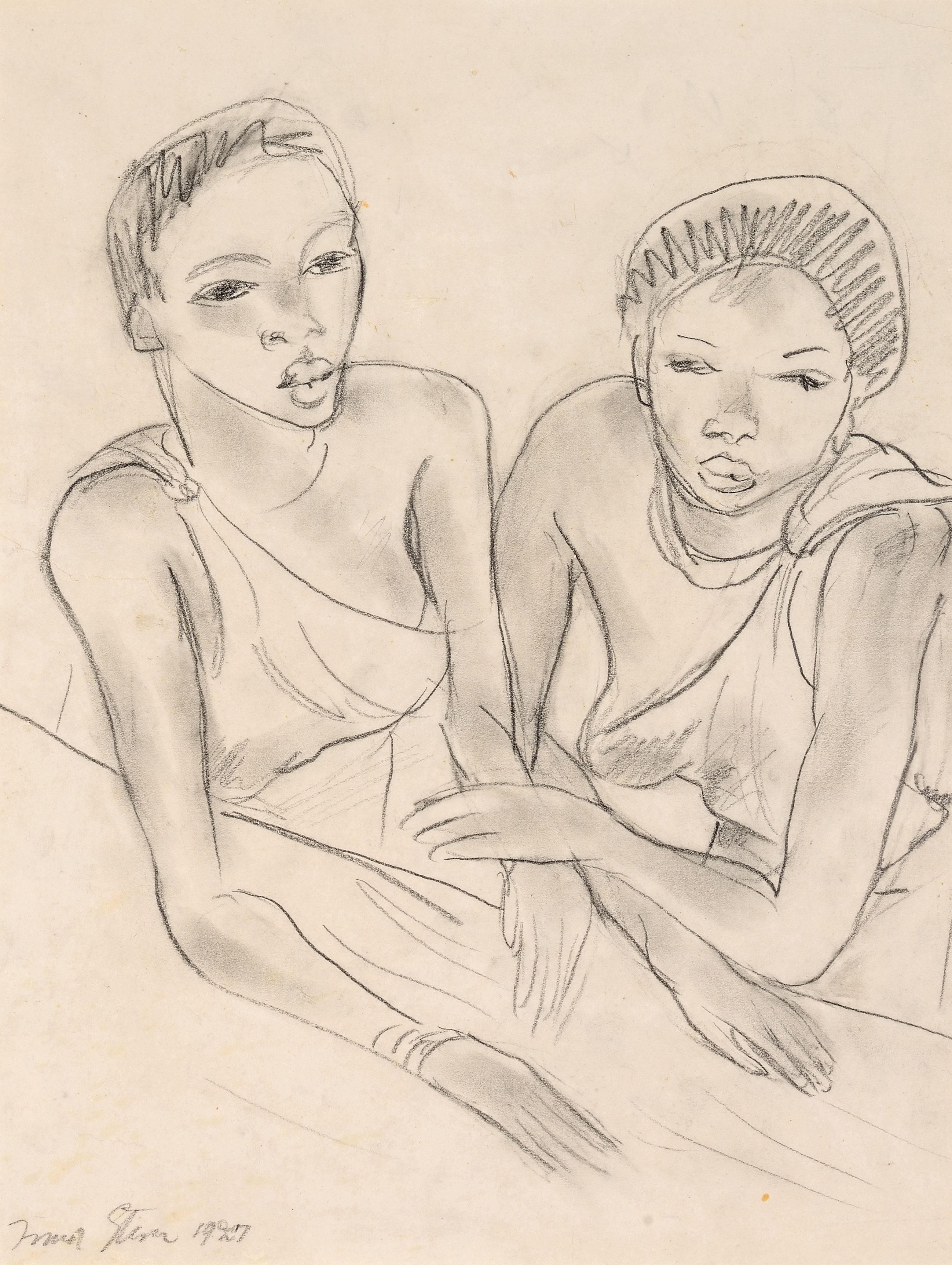 Irma Stern (South African 1894-1966) ARAB WOMEN WITH CHILDREN signed and dated 1952 oil on canvas 59,5 by 50cm Arab Women with Children painted in 1952, is one of Sterns latter studies of Arab culture. The work was painted in a sensitive evolved manner, with soft curves closely reminiscent to her drawings and gouache works of Arabic people and communities. Stern considered people as attractive paintable objects. She was particularly attracted to diverse cultures and applied her expressionistic painterly skills to capture ethnic features as well as the soul of her subjects [1]. In addition, she was expertly equipped to express feelings through the use of colour. The three individual veiled adult figures in traditional dress project a closed composition that tends to encapsulate and protect the children who peacefully linger in the foreground. The painting is painted with less spontaneity than usual, demonstrating a well-planned arrangement where the huddling Arab subjects are keeping a protective eye over their offspring. Although painted with primary red, yellow and blue colours, Stern was able to capture continuity in the work, which could easily have become fragmented, ultimately, again signifying her ability as a colourist. No wonder that Sterns talent and genius place her as South Africas top artist. Globally her market position is ranked 355, while South Africas next rated artists in the international sphere, Kentridge and Pierneef, are respectively ranked in positions 661 and 881. The present work is a remarkable and important example, which emanated from Sterns artistic oeuvre. F.S. Edited from: Marion Arnold, Irma Stern, A Feast for the Eye, 1995, Editor: S. Kossick & T. Kennedy, Published by Fernwood Press / Rembrandt Van Rijn Art Foundation, Vlaeberg.