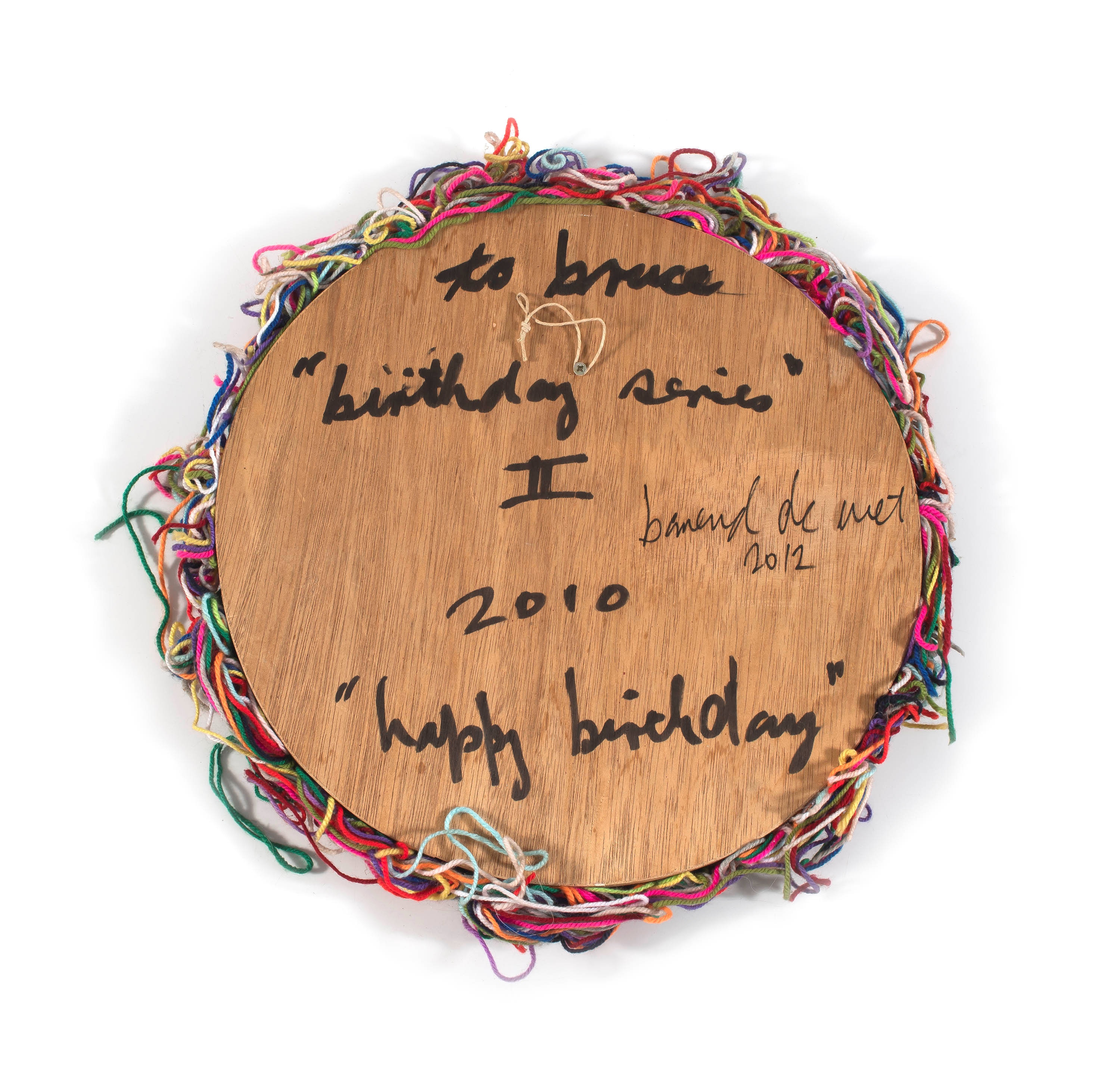 Medios: wool on plywood Talla : diameter: 40,5cm Firma: signature label stapled to the front; signed, dated 2010 and 2012, and inscribed 'to bruce birthday series II 2010 happy birthday' on the reverse
