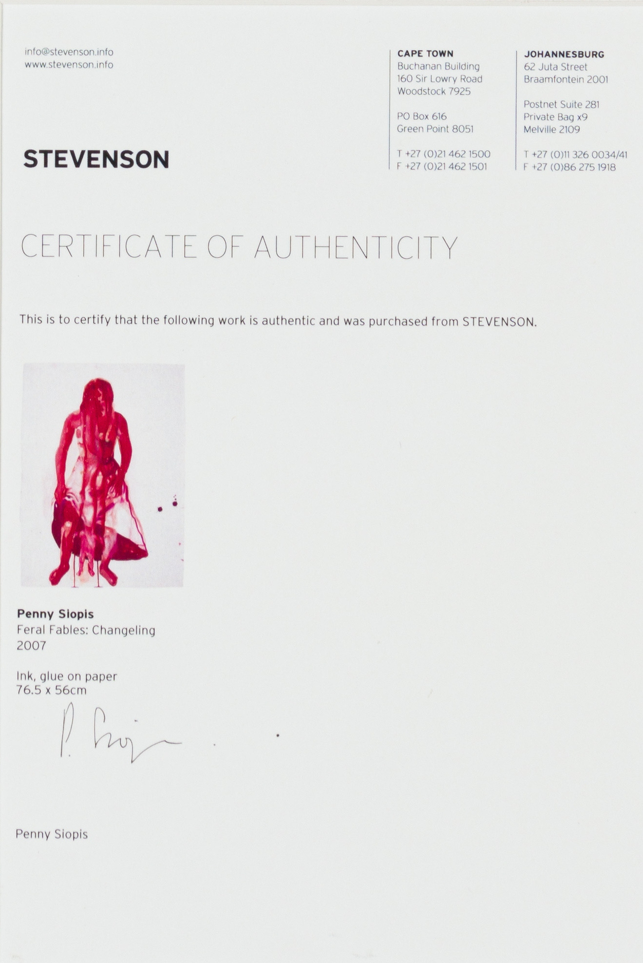 Procedencia : Stevenson, Johannesburg.