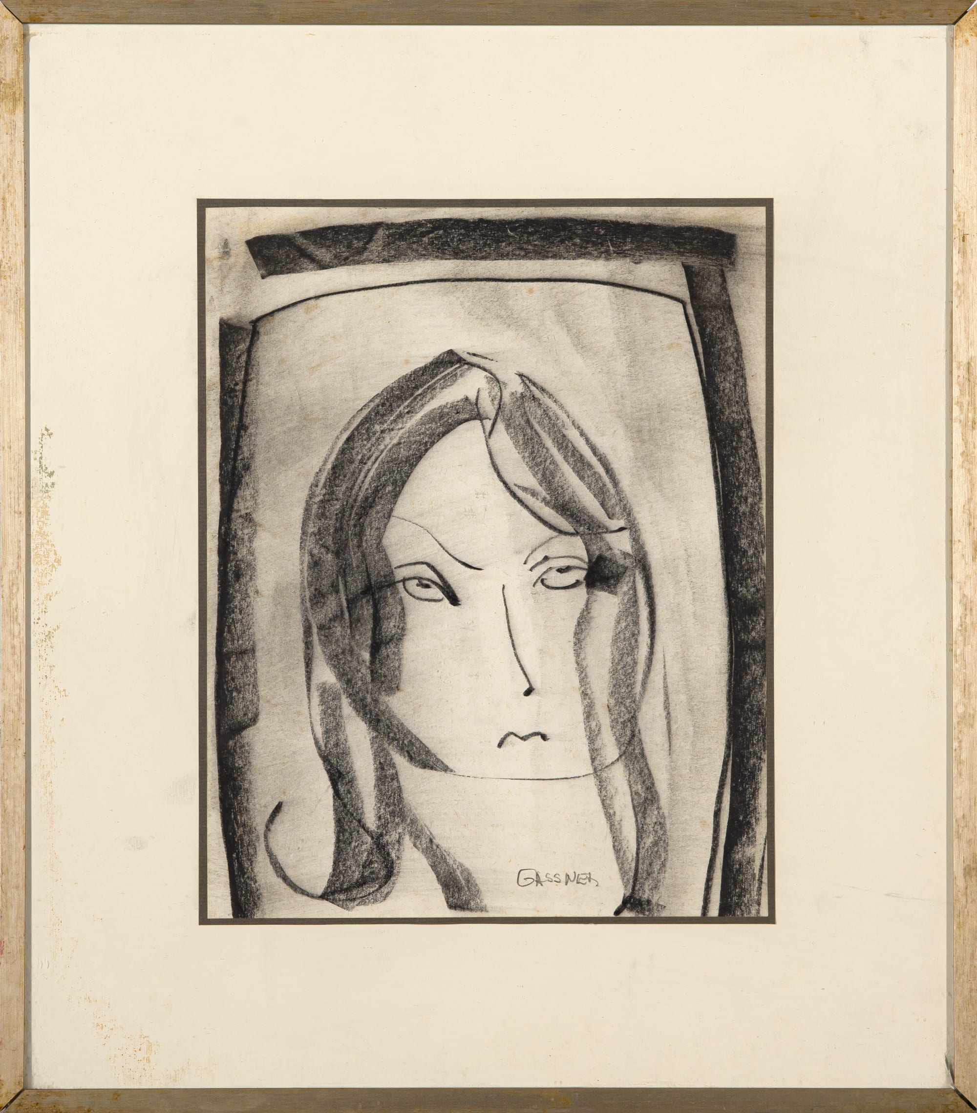 Medios: charcoal on paper Talla : 27 by 21cm excluding frame; 42 by 37 by 3cm including frame Firma: signed