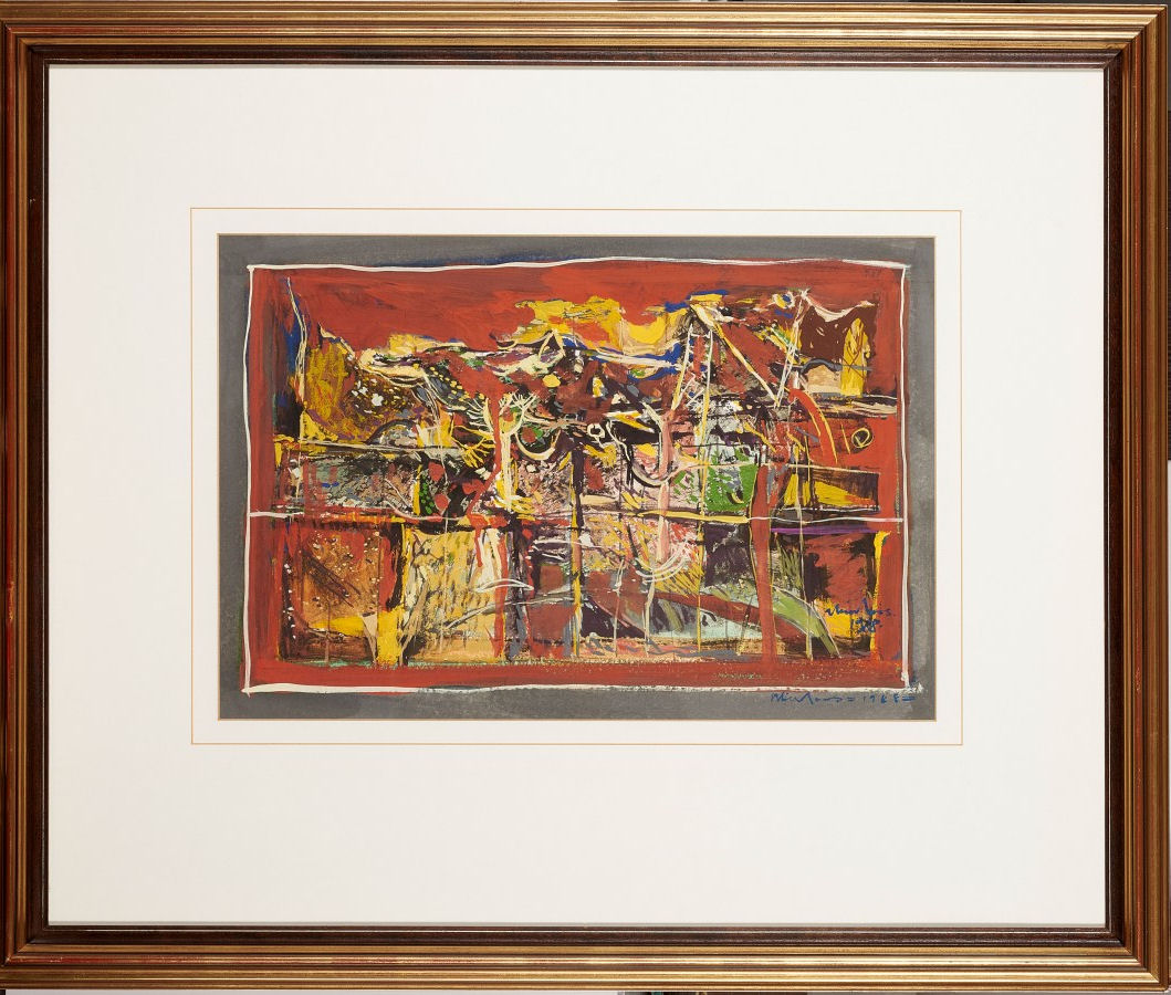 Medium: gouache on paper Dimensions : 39 by 57cm excluding frame, 80 by 95 by 4cm including frame Signature: signed and dated 1988 twice