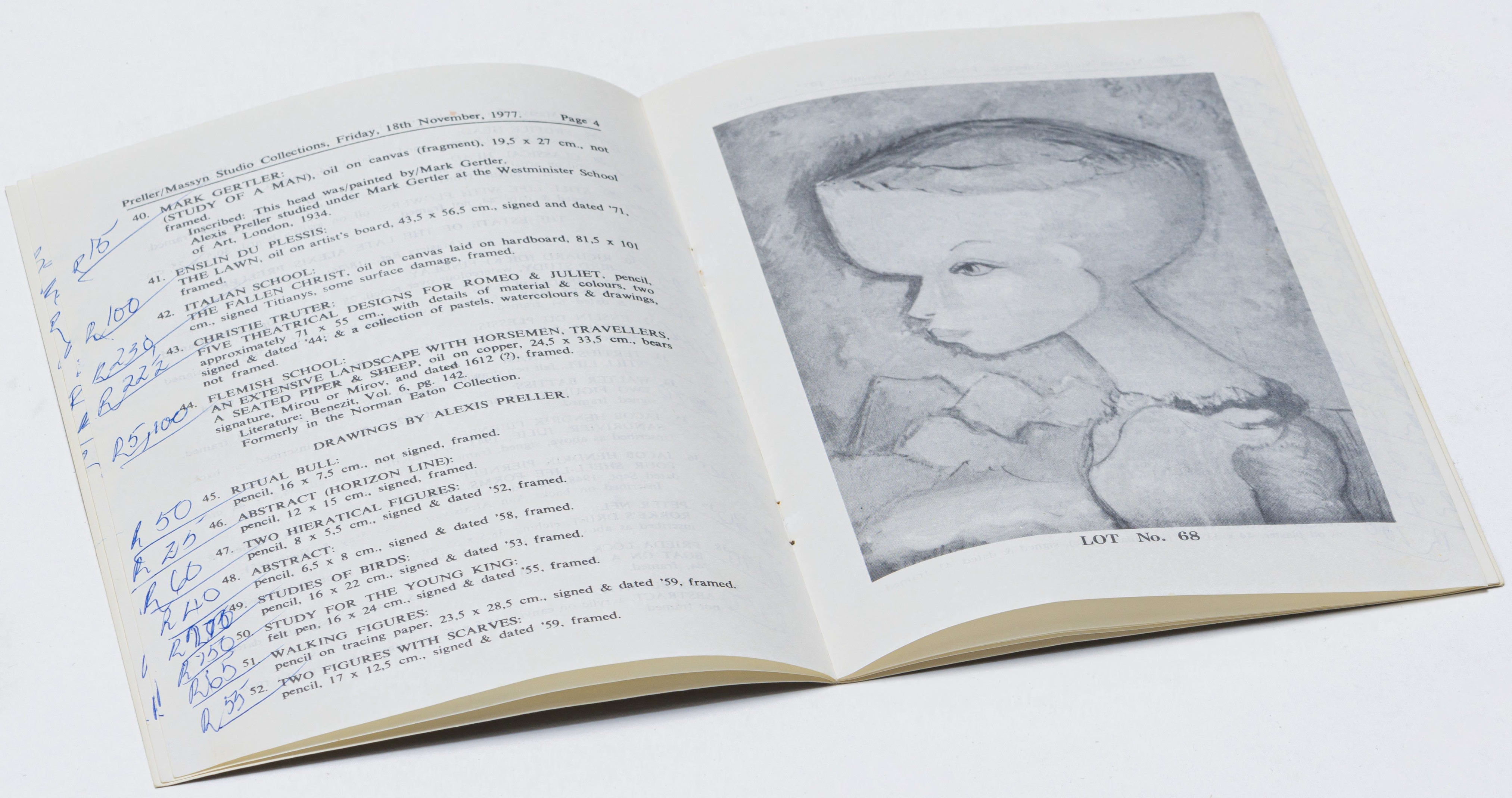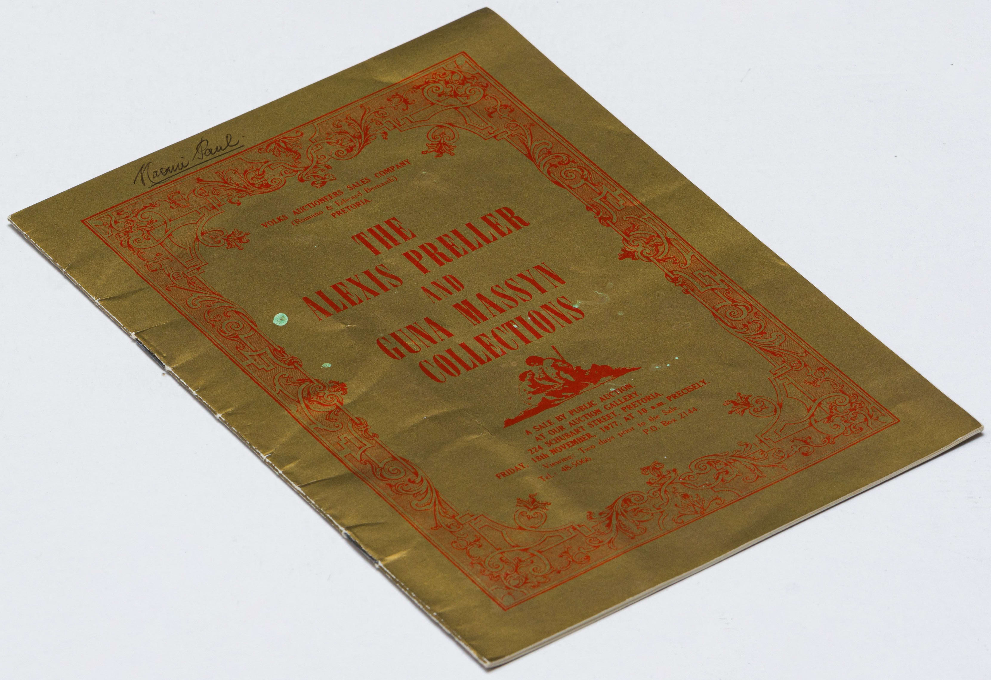 3. Volks Art Auctioneers, Pretoria, The Alexis Preller and Guna Massyn Collections, estate sale catalogue, 18 November 1977.