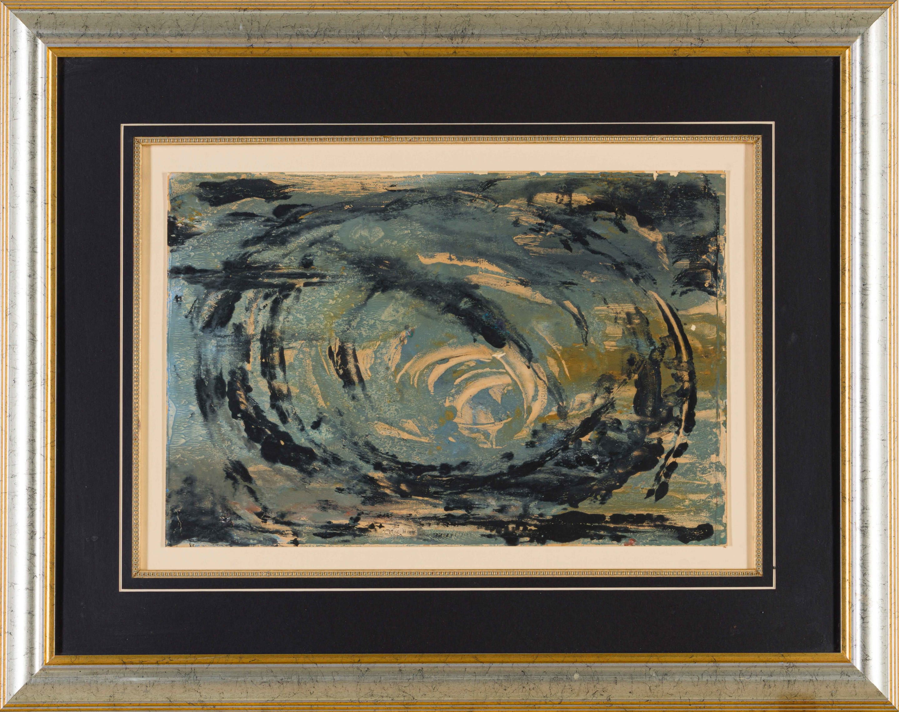 Medium: mixed media on paper Dimensions : 31 by 46cm excluding frame, 59 by 74 by 3cm including frame Signature: signed and dated 1960