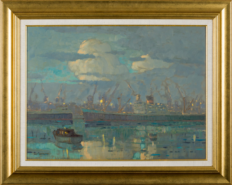 Consulter la cote et le prix de Cloudy Harbour Scene par Nils Andersen