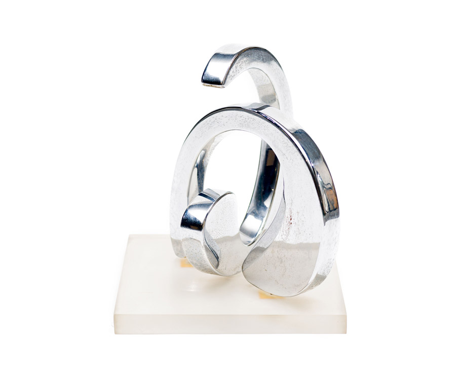 Medium: chrome plated steel, mounted on a perspex base