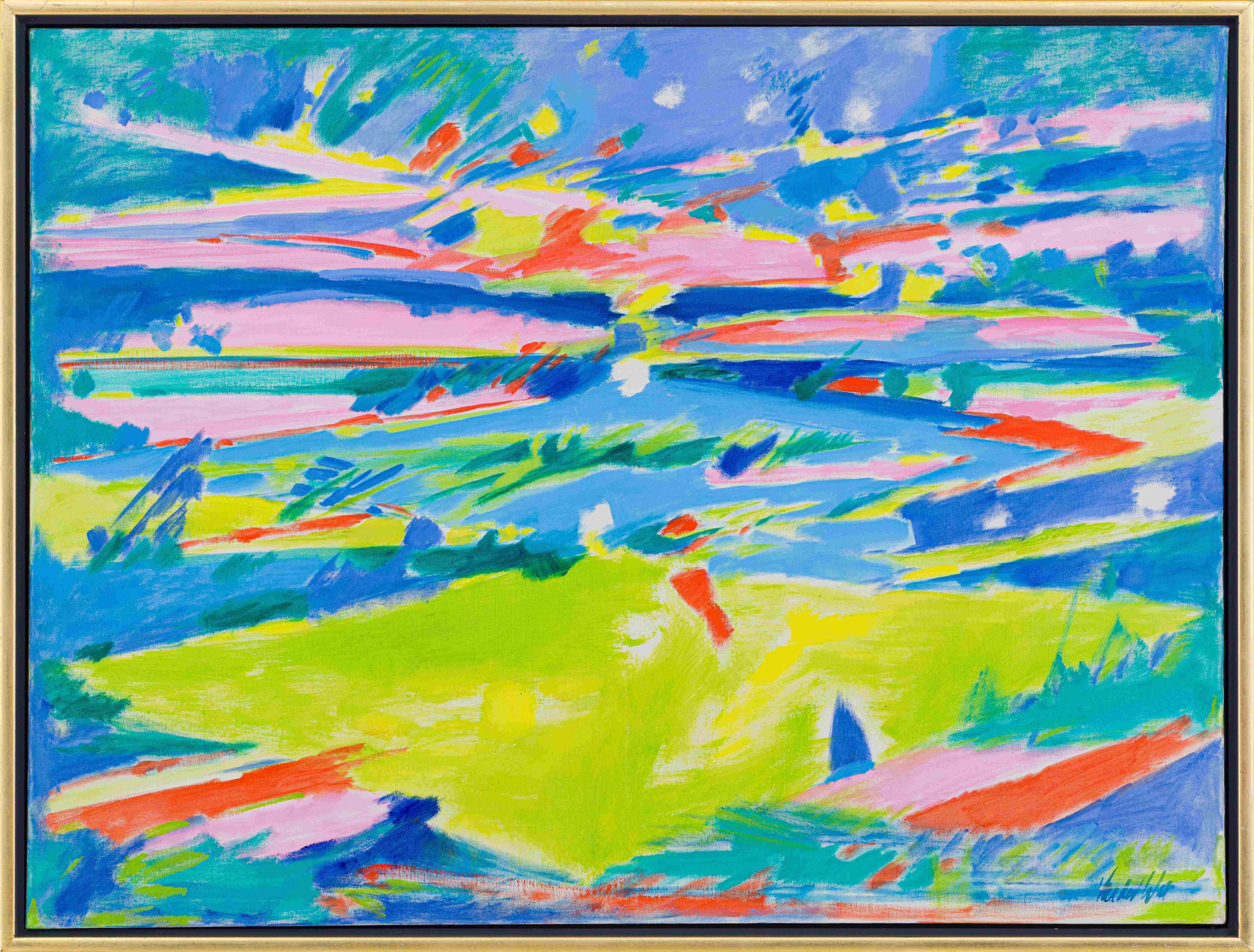 Dimensions : 122 by 91,5cm excluding frame; 127,5 by 97 by 4,5cm including frame