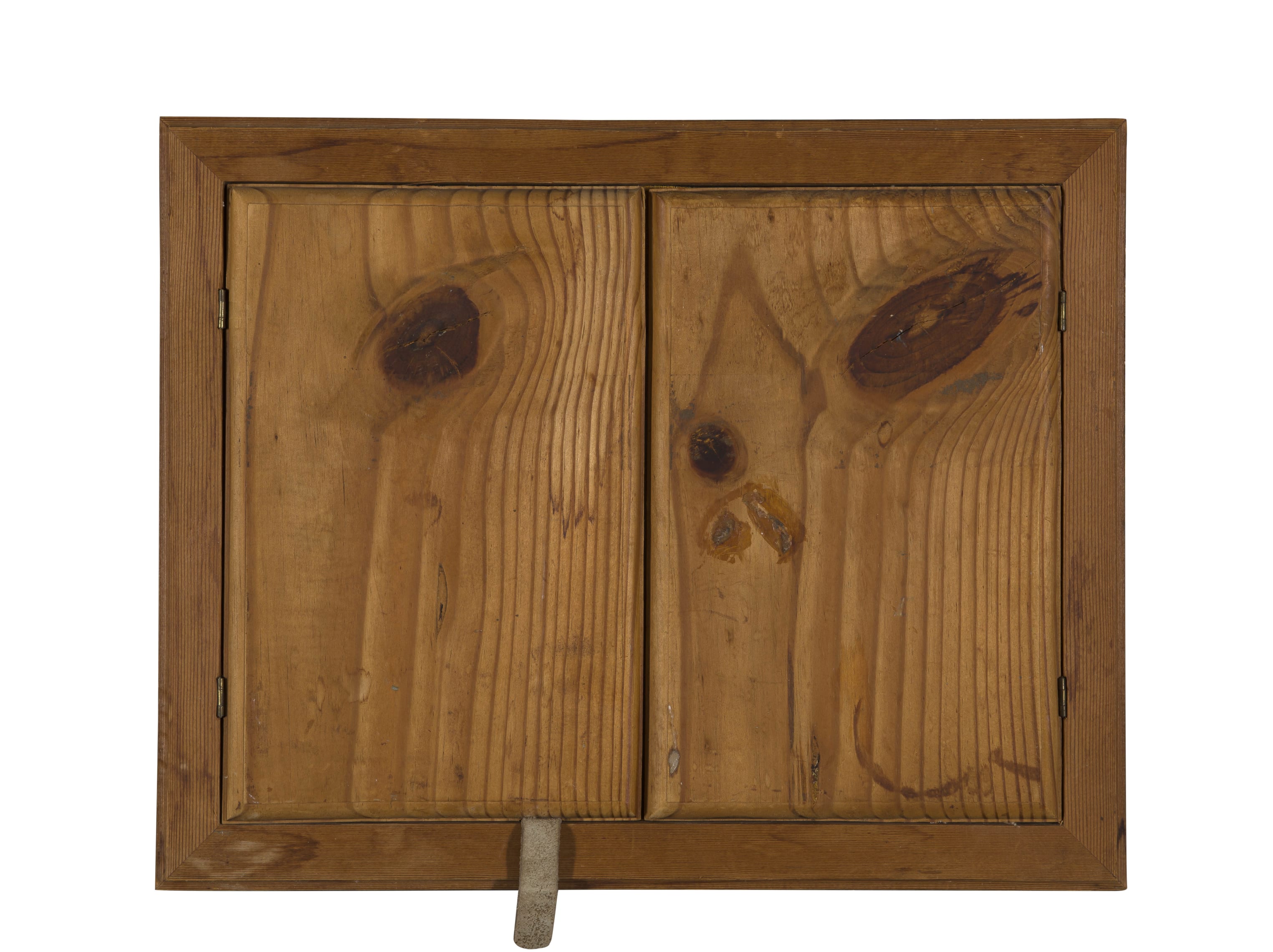 Medium: oil on canvas in the artist's hand-made wooden frame Dimensions : height: 39cm, width: 71cm, depth 21cm, with frame open, 32,5 by 42,5cm excluding frame, 40 by 49 by 4cm including frame Signature: signed, incised with the title on the inside of the right door of the frame