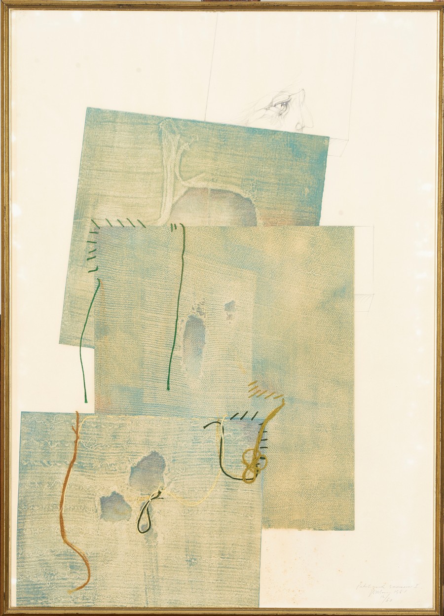 Medium: lithograph and collage Dimensions : both 70 by 50cm excluding frame, 73 by 53 by 2cm including frame Signature: both signed, dated 1981, numbered 12/60 and inscribed with their respective titles in pencil