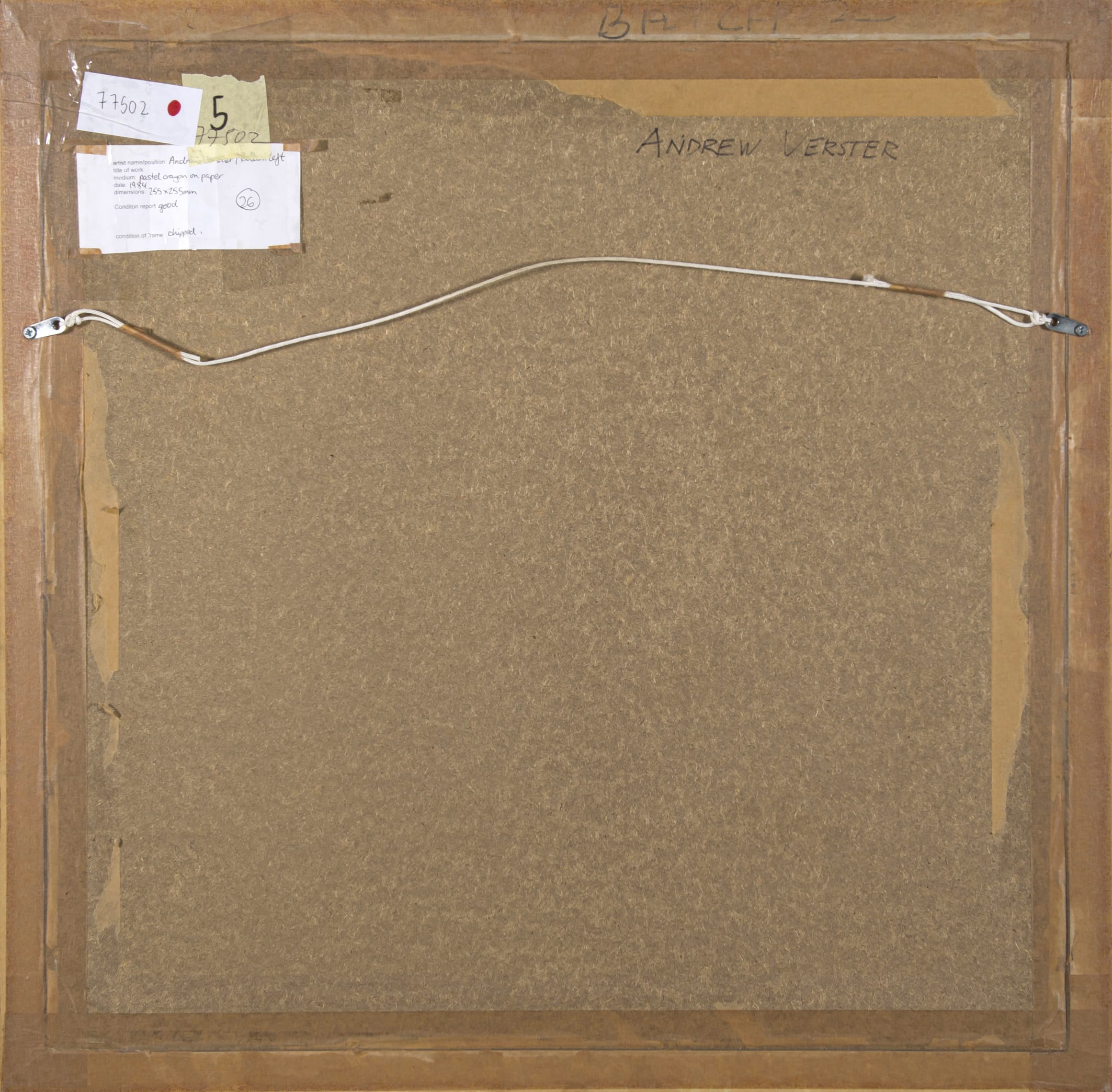 Medium: pastel crayon on paper Dimensions : 37 by 36cm excluding frame, 65,5 by 65,5 by 2cm including frame Signature: signed and dated 84, dated, inscribed with the artist's name and the medium on a label adhered to the reverse