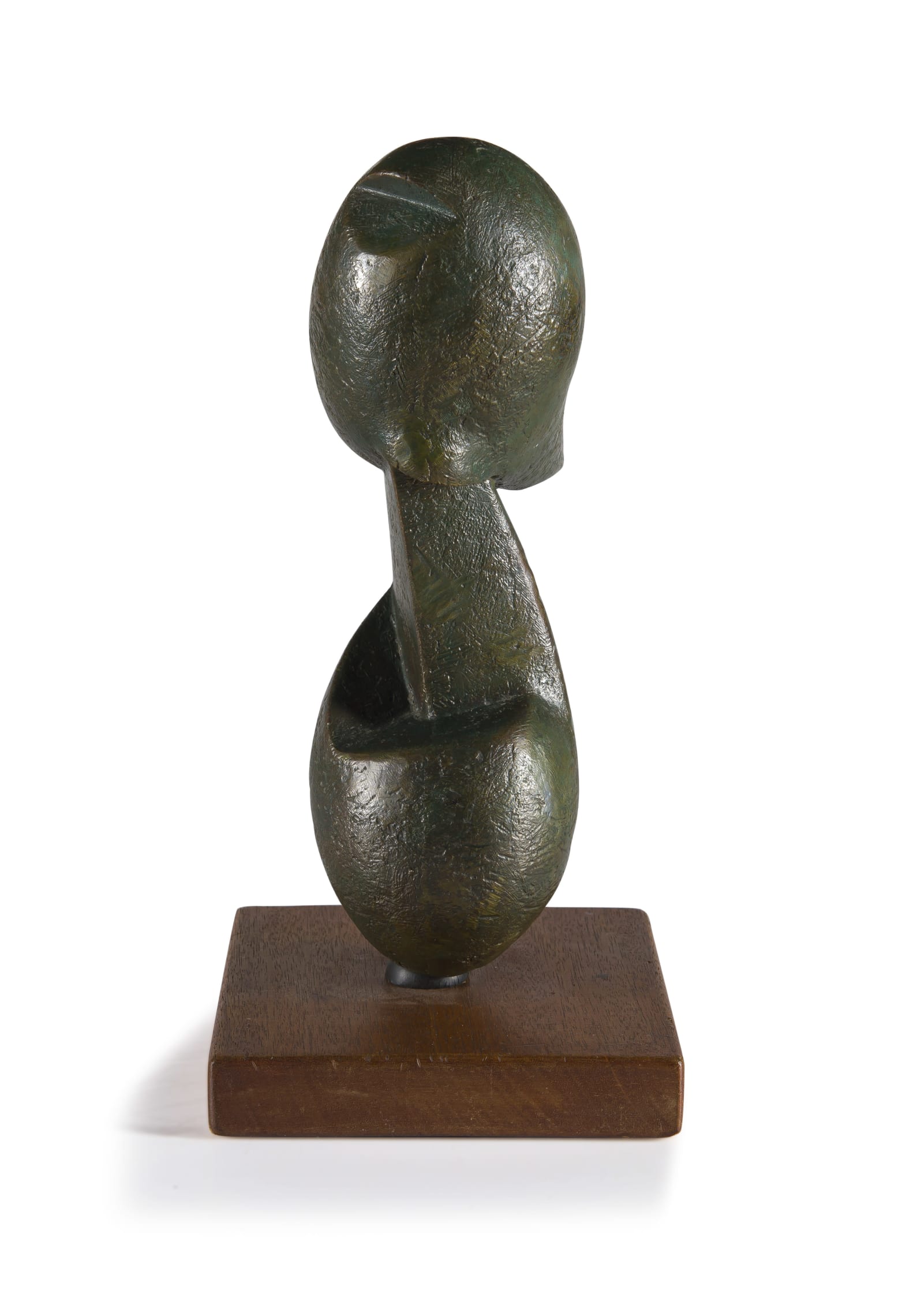 Medium: bronze with a green patina on a wooden base Dimensions : height: 32cm, excluding base, 35cm, including base, width: 9,5cm, depth: 14cm Signature: signed and dated 86