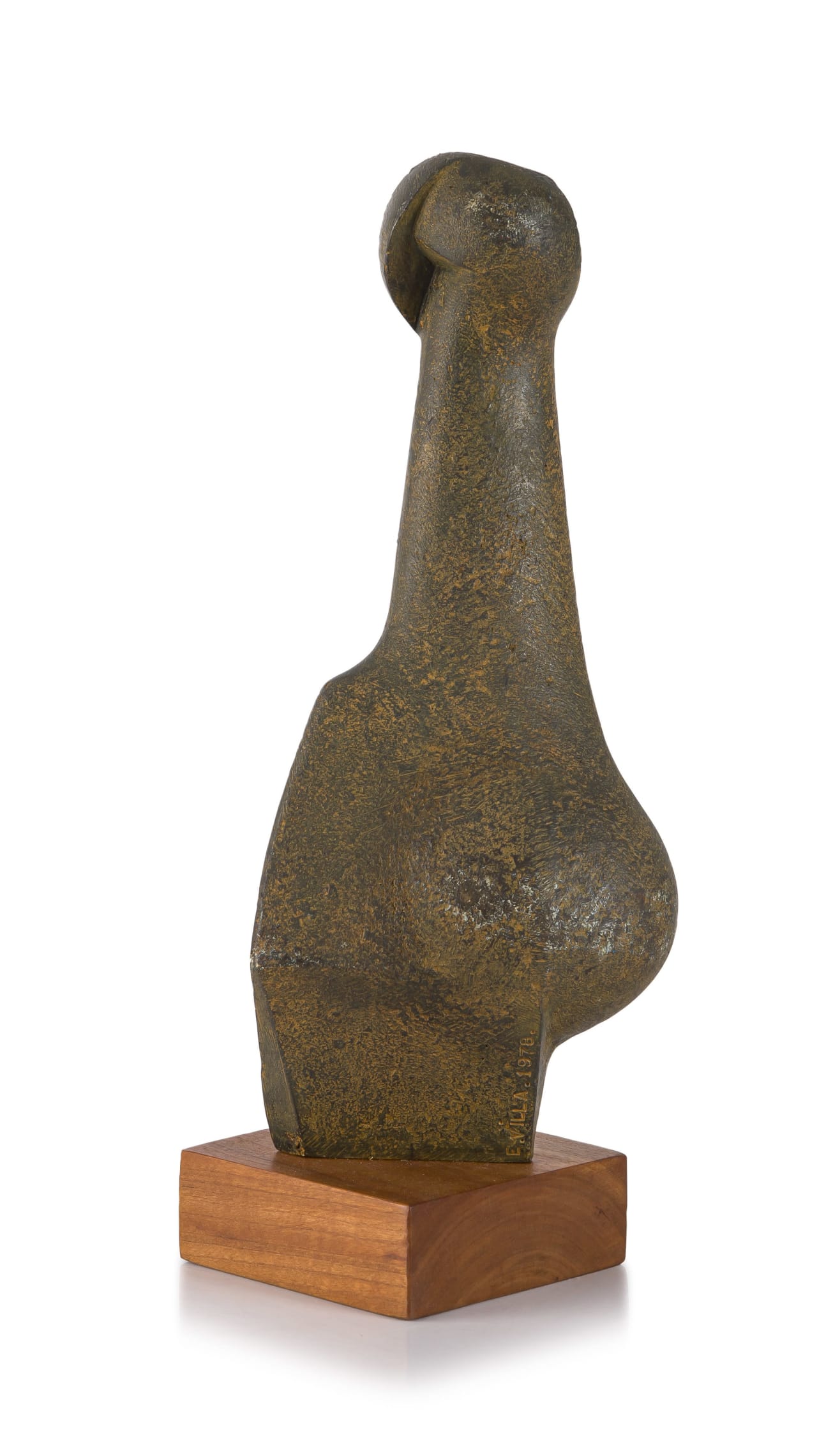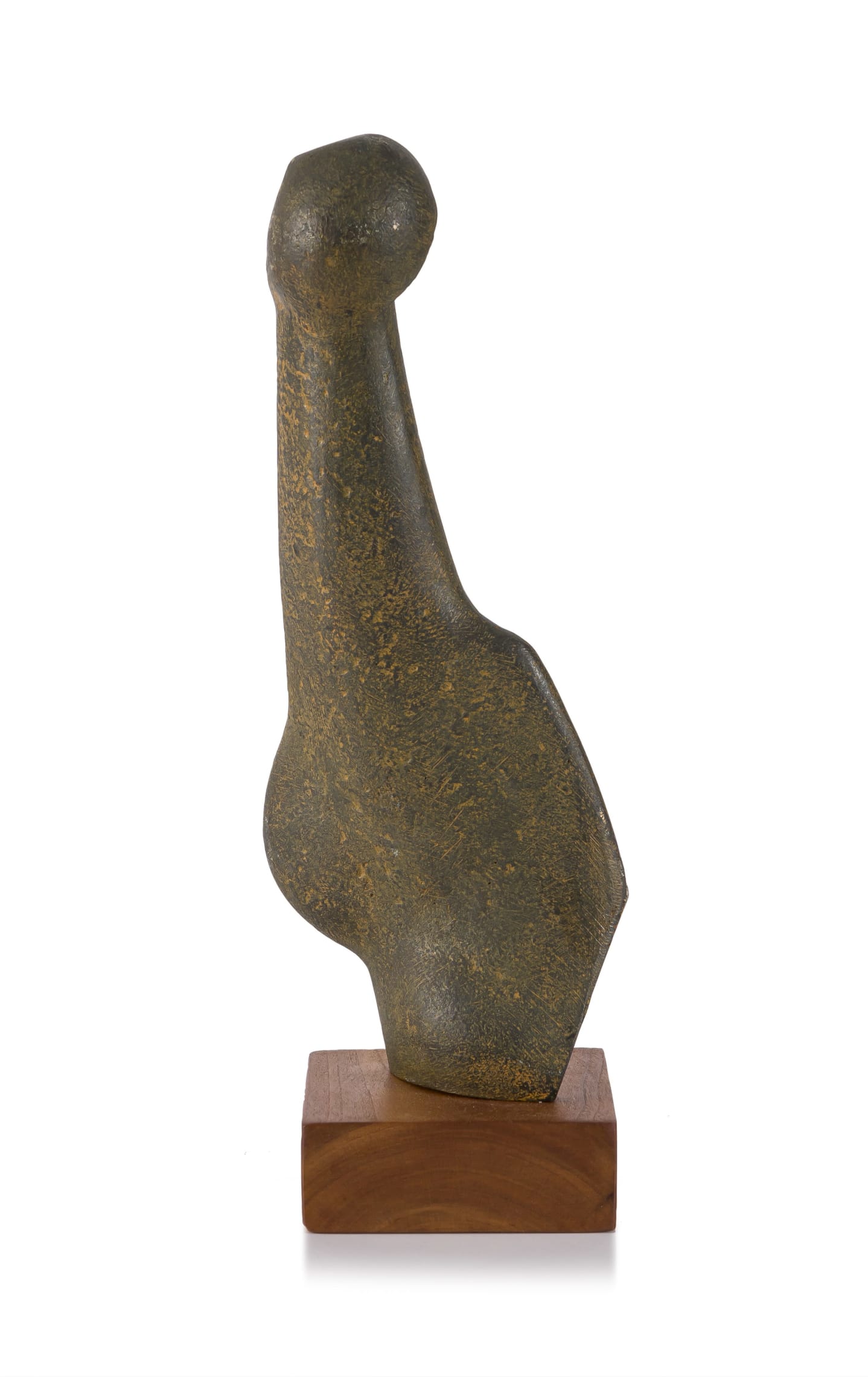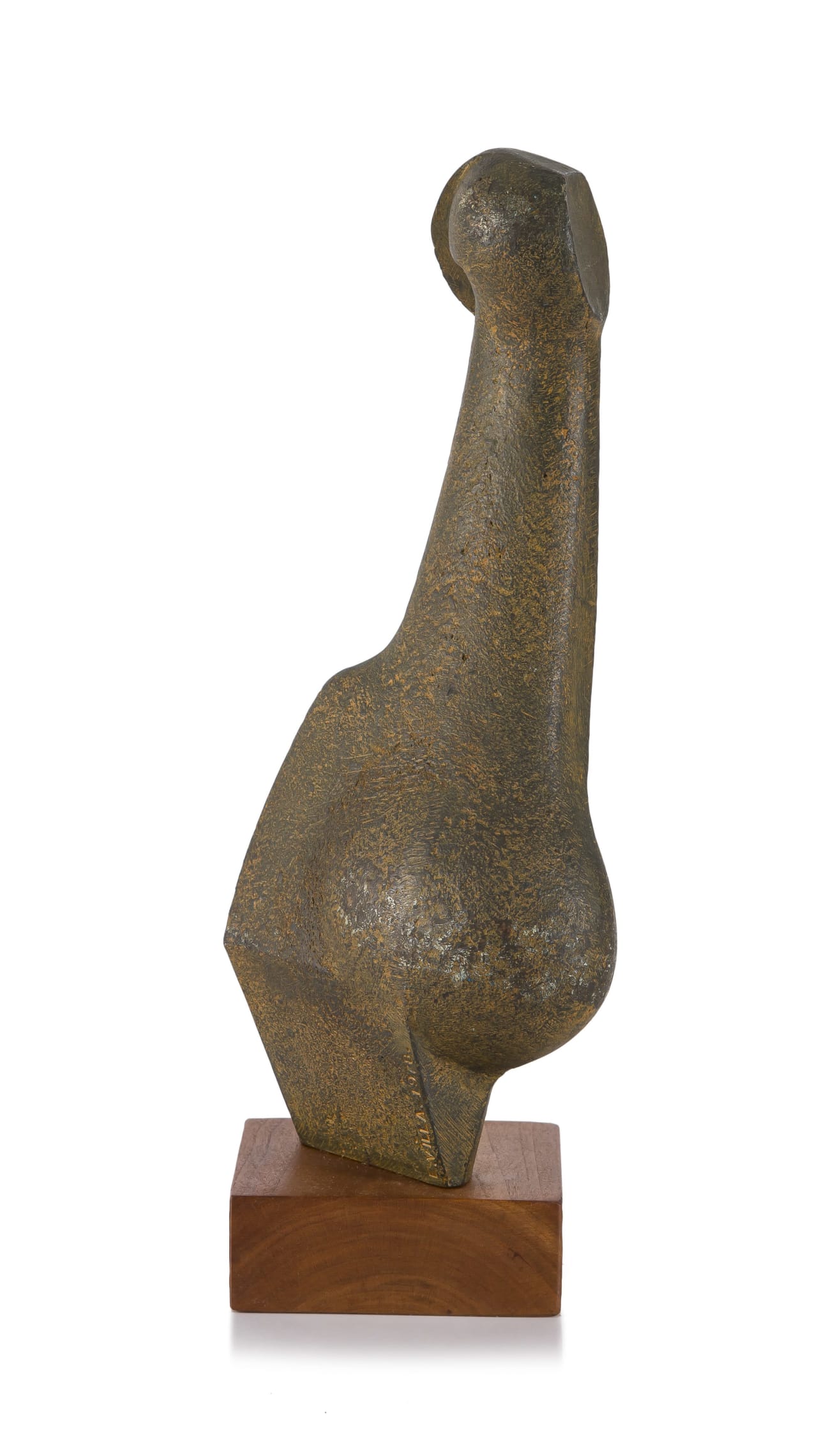 Medium: bronze with a rust patina on a wooden base