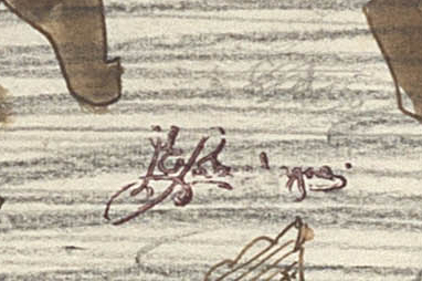 Medium: pencil and watercolour Dimensions : 22,5 by 25cm excluding frame, 47 by 49 by 2,5cm including frame Signature: studio stamp signature