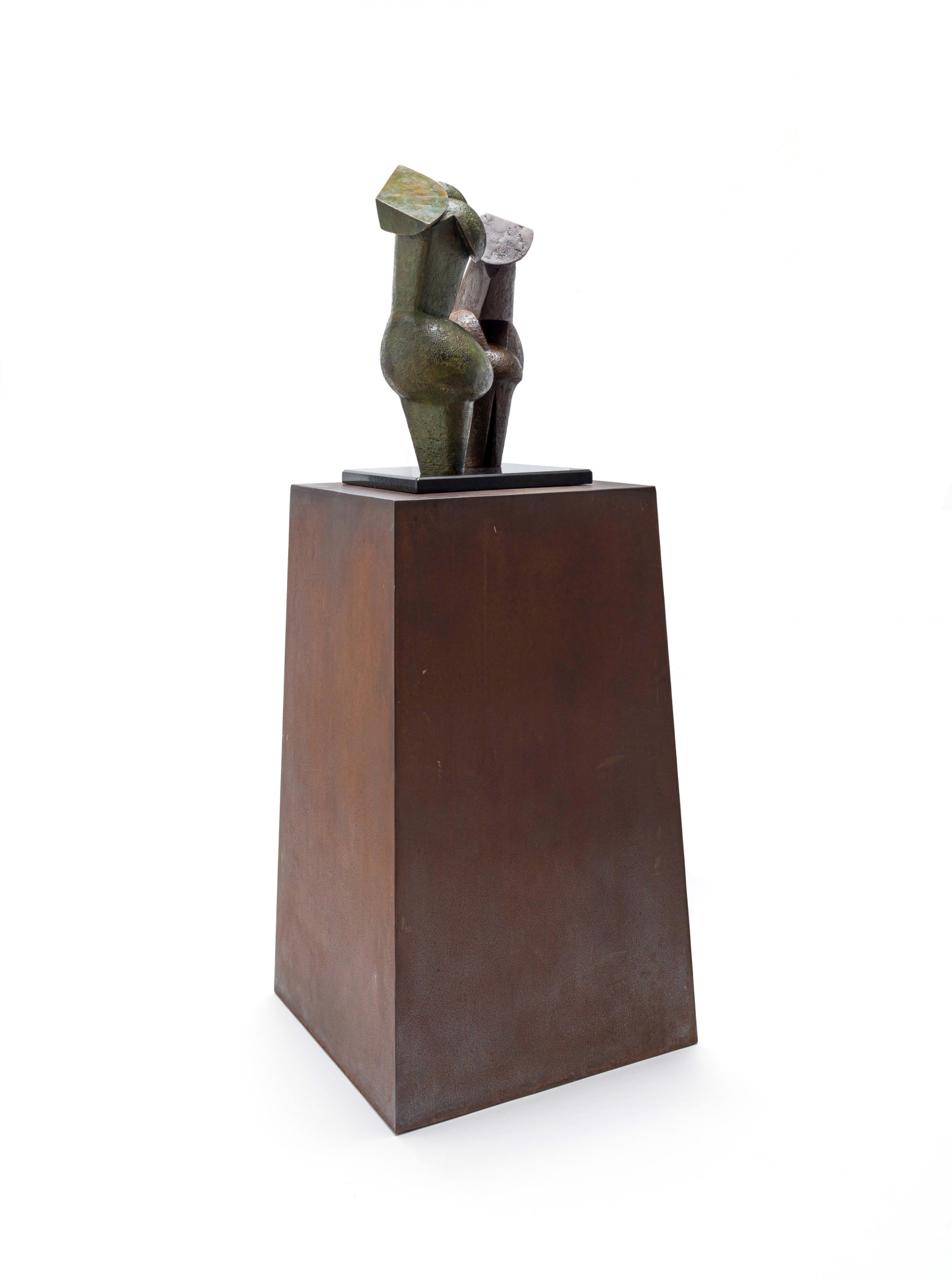 Notes : After WWII a surge of energy and talent emerged in the Johannesburg art community. At the centre of this new vitality that shifted local art production toward a more African sensibility was a group of predominantly new immigrants from Europe, including the Italian-born Edoardo Villa, who chose to make South Africa his home after he was released from the Zonderwater POW camp. As an art student in Italy Villa had been exposed to the great modernist artists of the time, and in South Africa he created a cross cultural synthesis deeply rooted in a particularly African convention, his experience of war and captivity, and the modern architecture and industrialisation of the city of Johannesburg and its surrounds. He produced a prodigious body of extraordinary sculptures in bronze and cut steel over his long career, most notably his monumental public sculptures.
