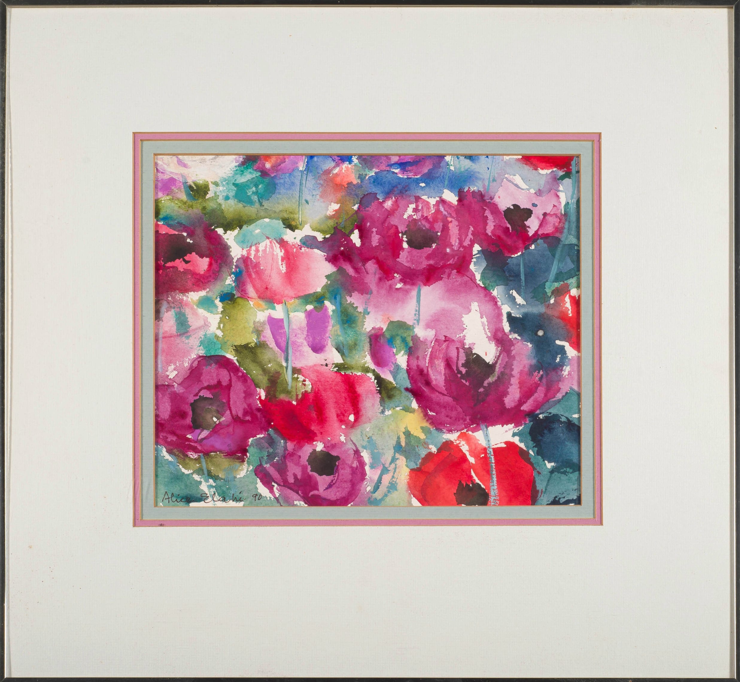 Medium: watercolour on paper Dimensione : 26 by 30,5cm excluding frame, 52 by 55 by 3cm including frame Firma: signed and dated 1990