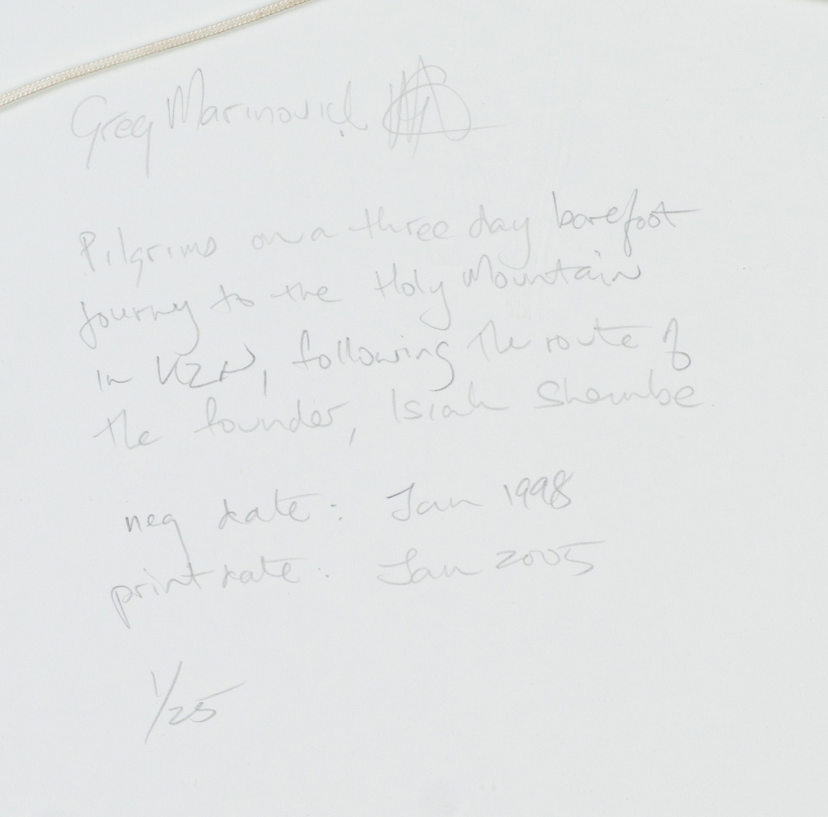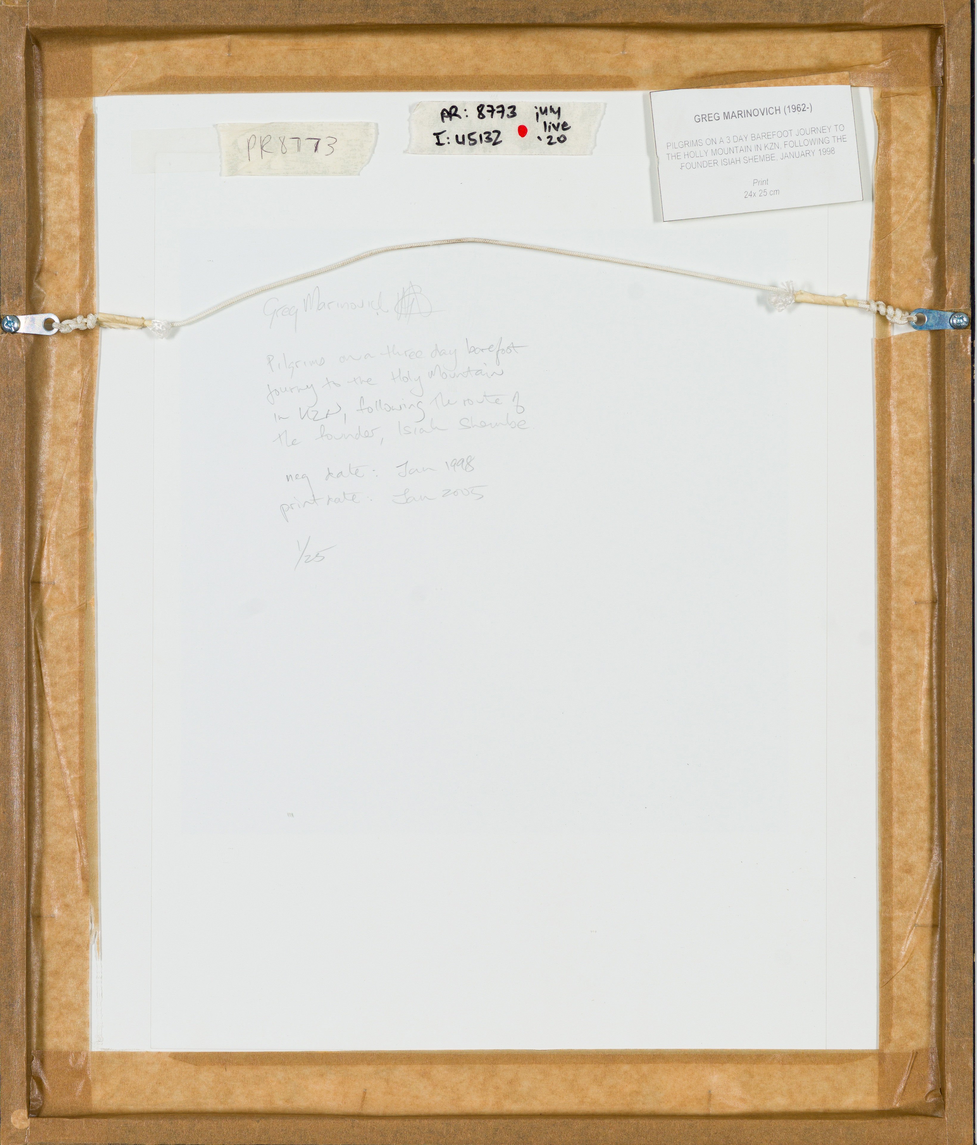 Firma: signed, dated Jan 1998 (negative) and Jan 2005 (print), numbered 1/25 and inscribed with the title in pencil on the reverse of the print; inscribed with the artist's name, the title and 'print' on a label adhered to the reverse of the frame