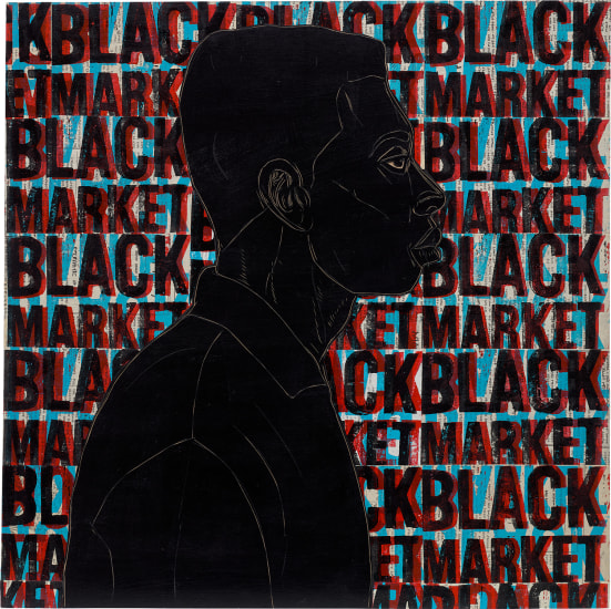EPHREM SOLOMON (B.1983) Unknown Life 1 acrylic on woodcut 35 1/4 x 33 3/8in
